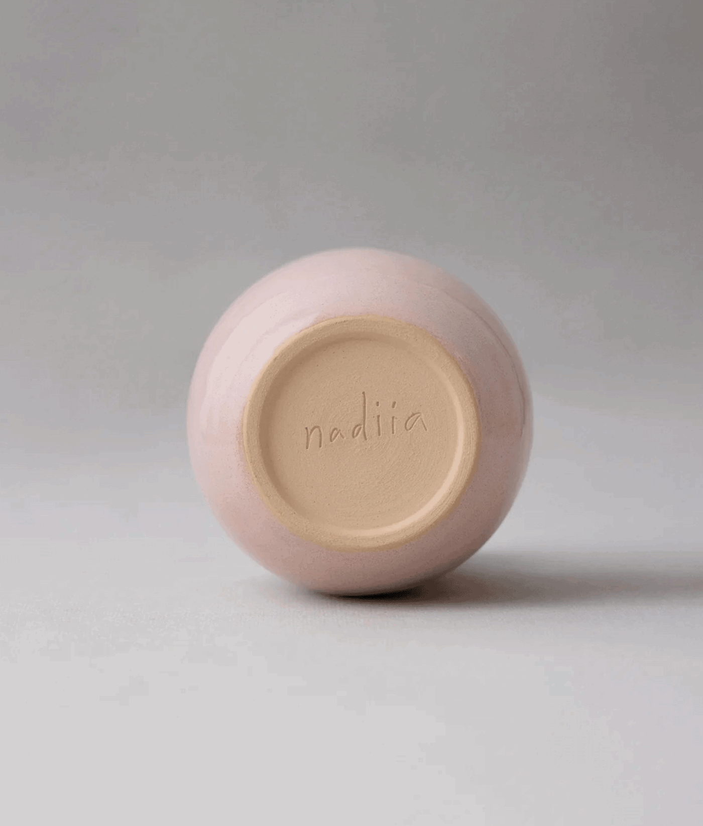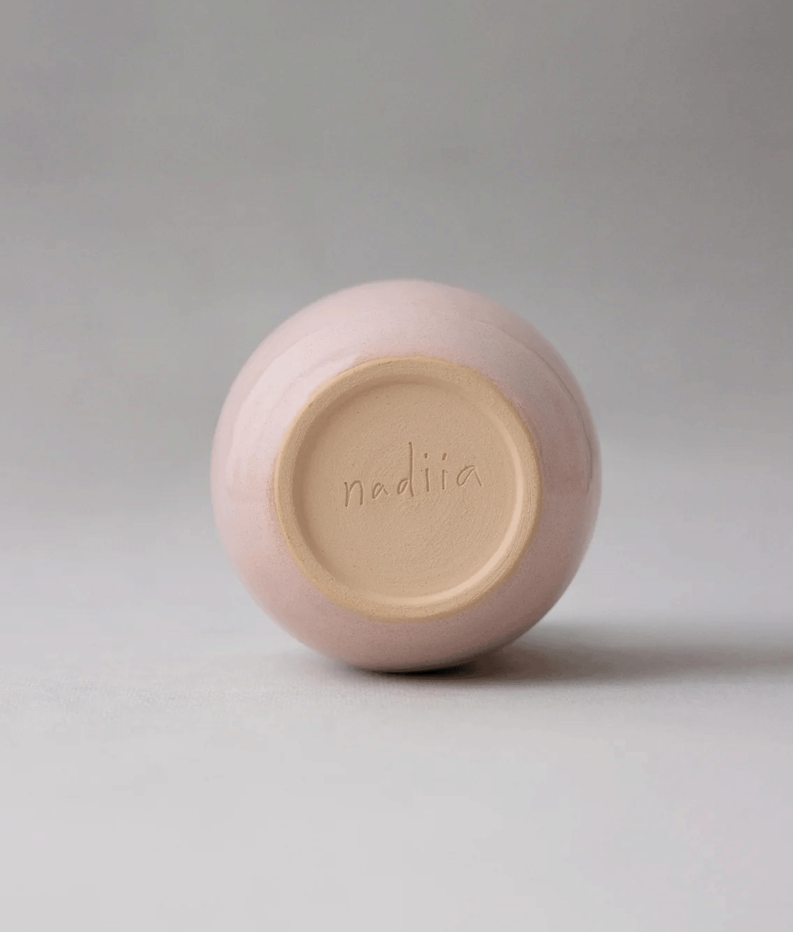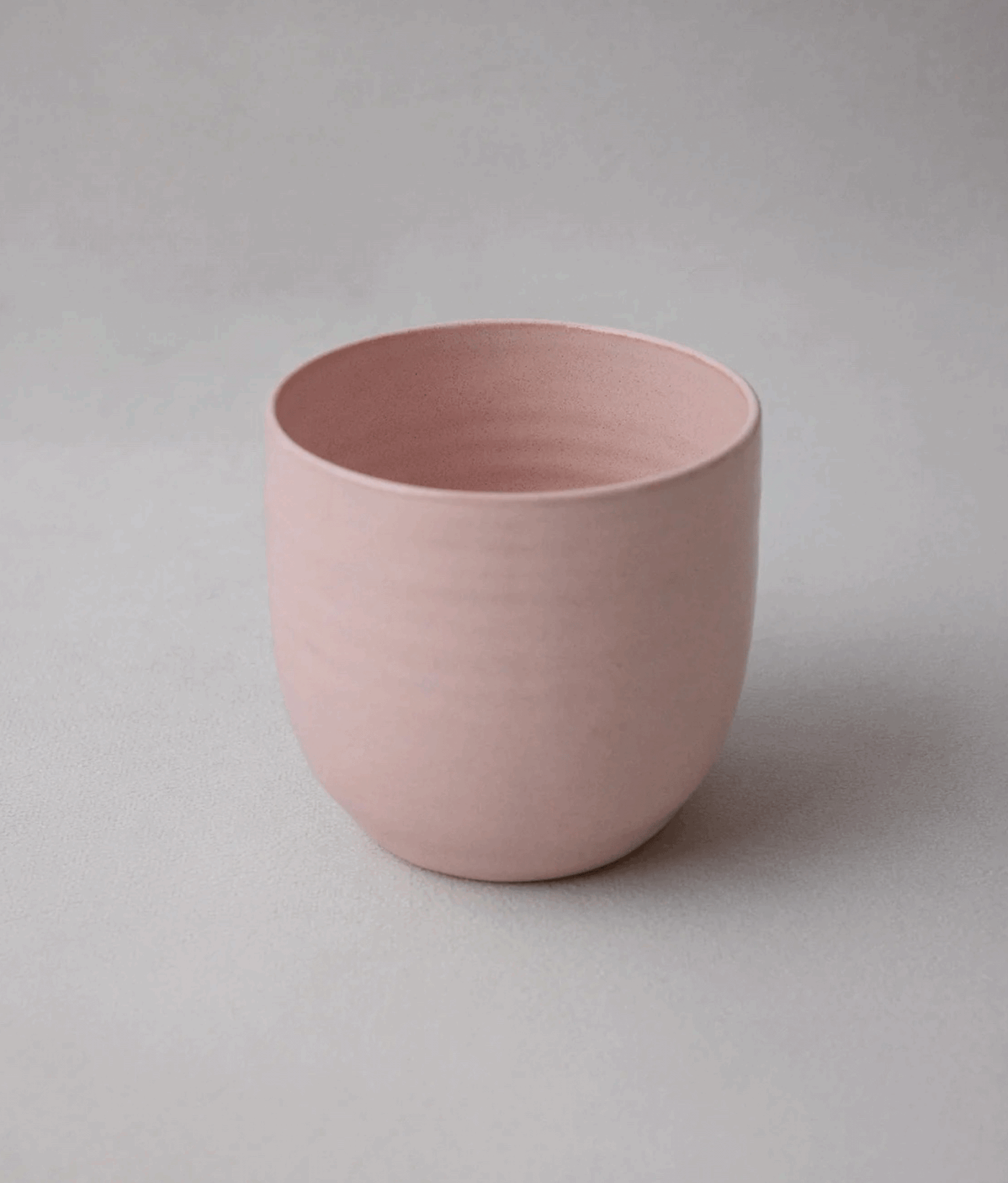 Невелике, лаконічне керамічне горнятко рожево-винного кольору розраховано до вжитку з холодними і гарячими напоями
