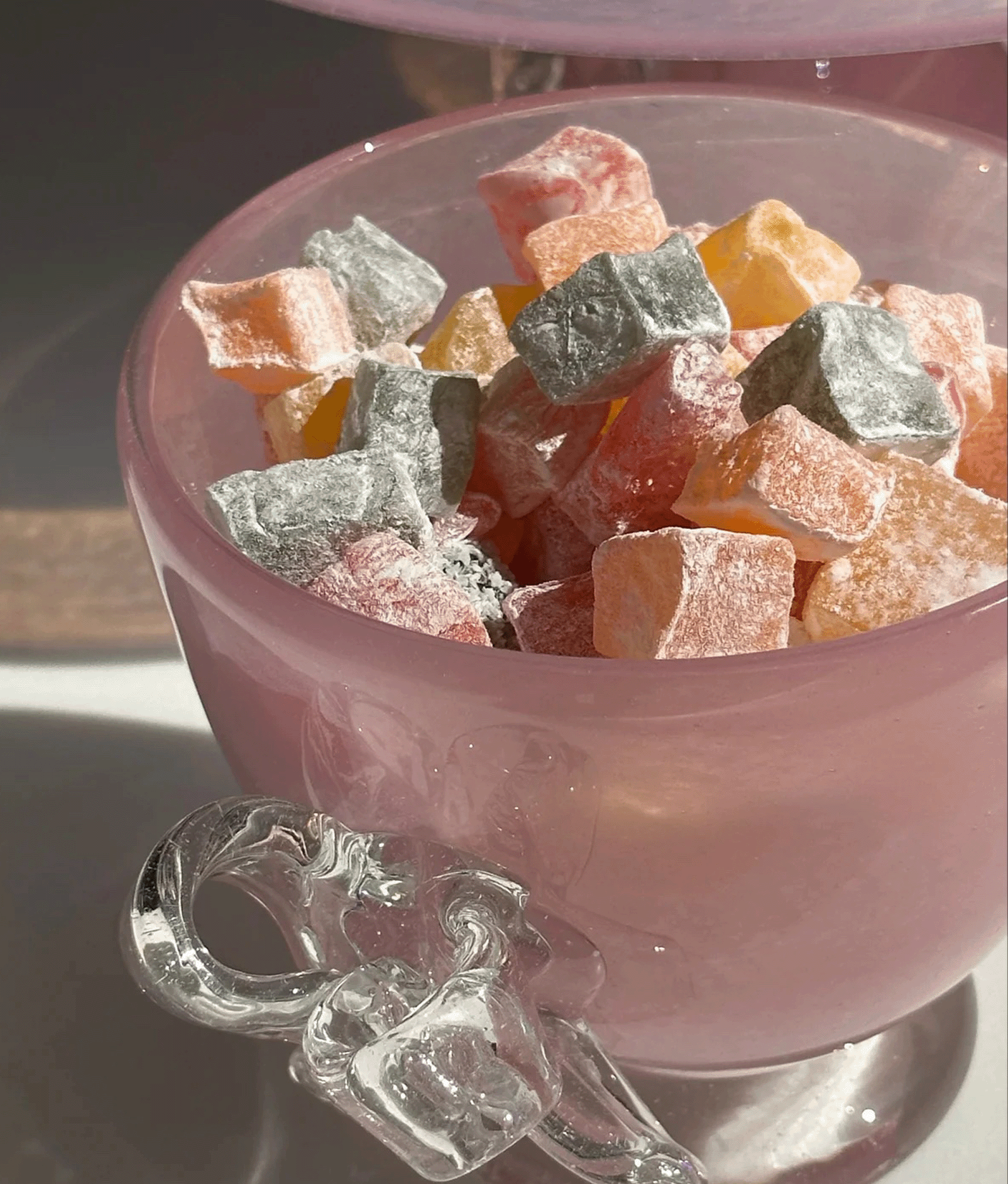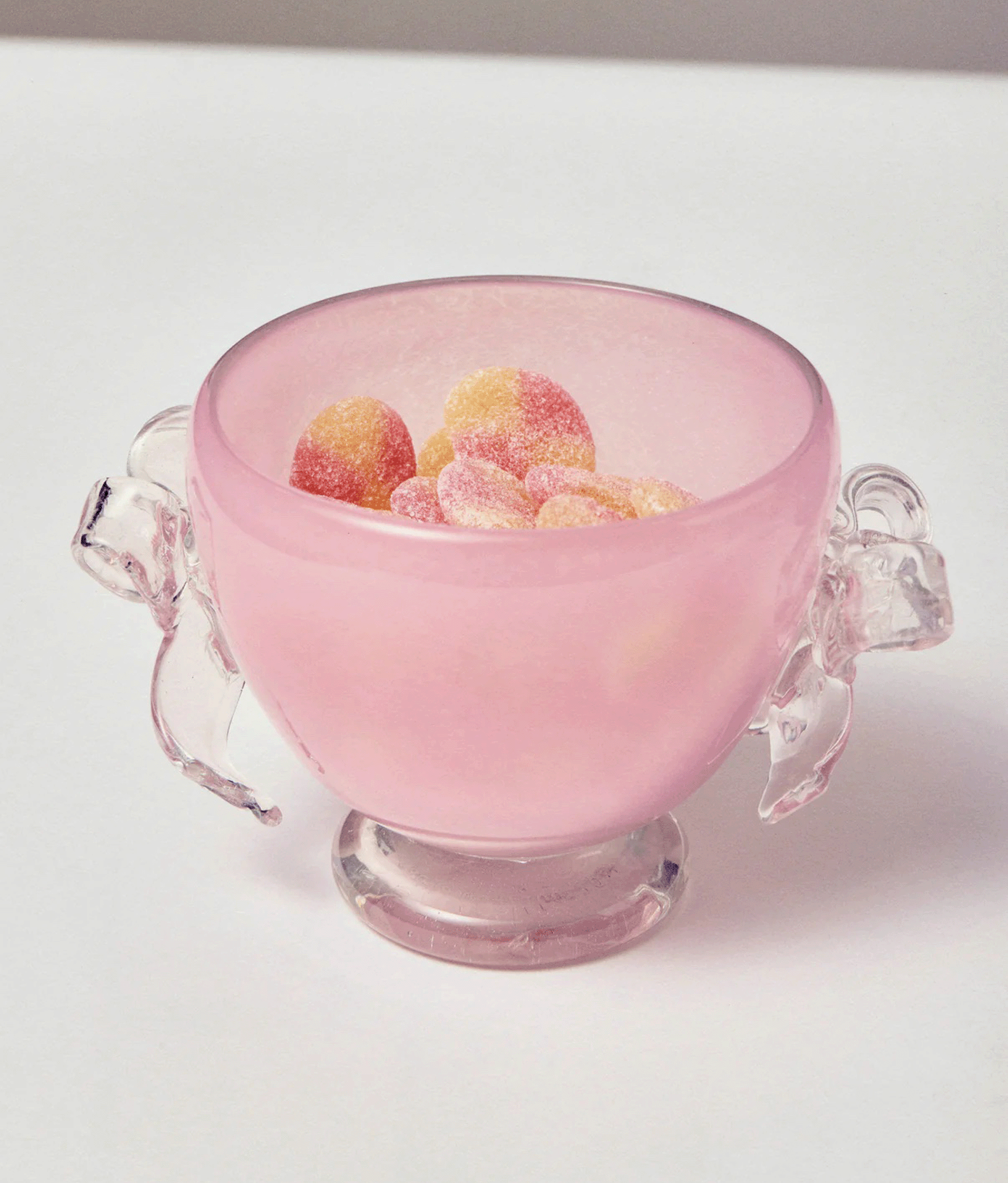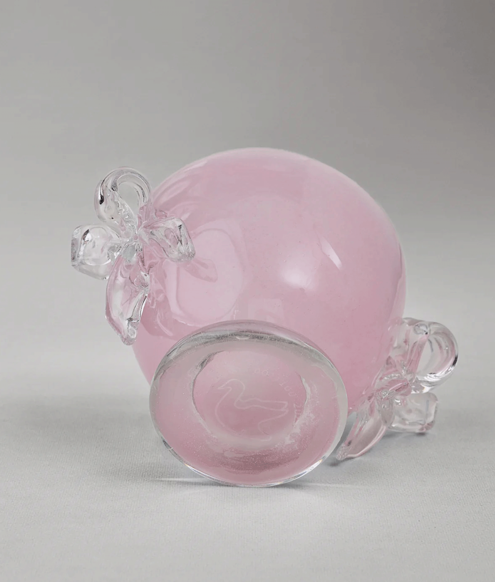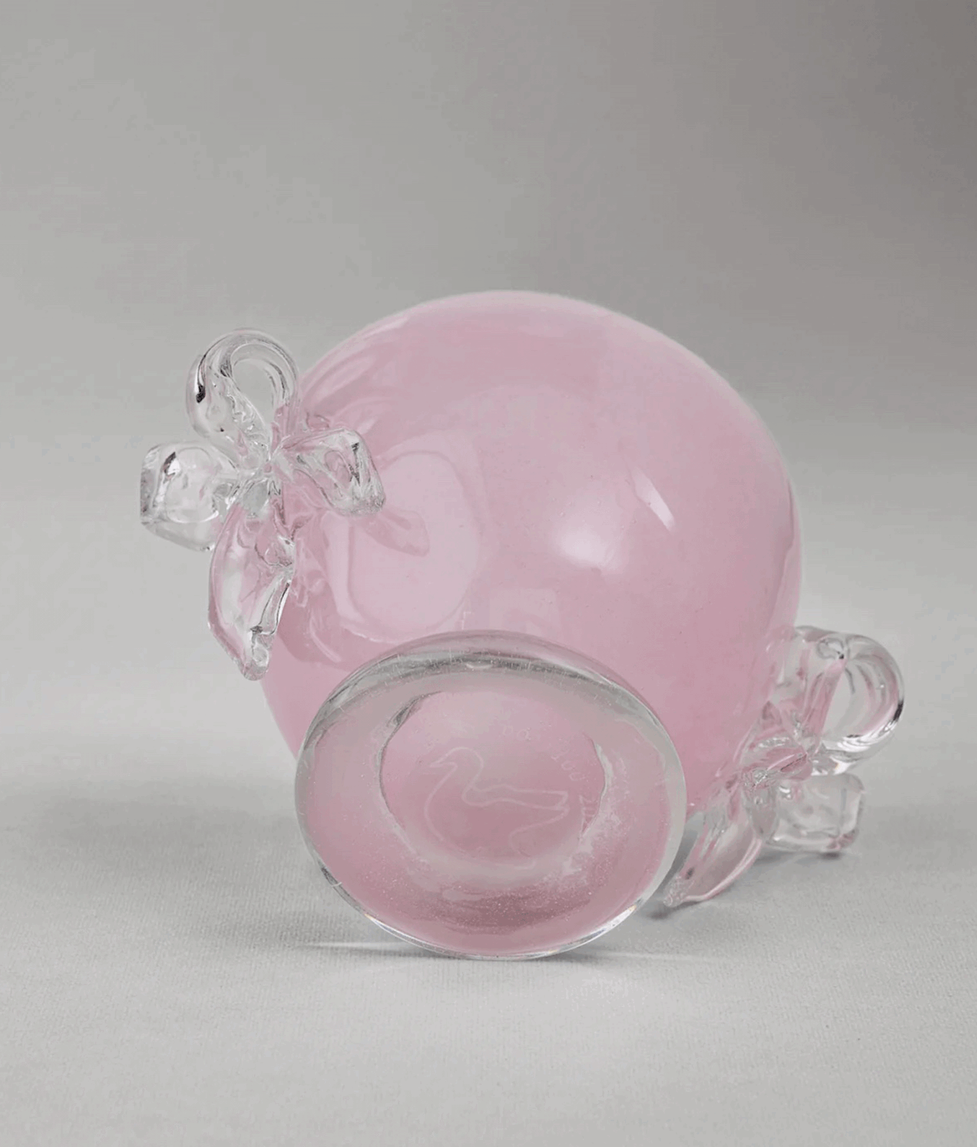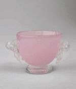 Рожева цукерниця може служити не лише ємністю для сипучих продуктів на кухні, а й стати вишуканою прикрасою. Два банти, створені вручну у львівській гутній печі, надають їй унікальності. Кожен виріб має власний номер та гравійоване маркування.