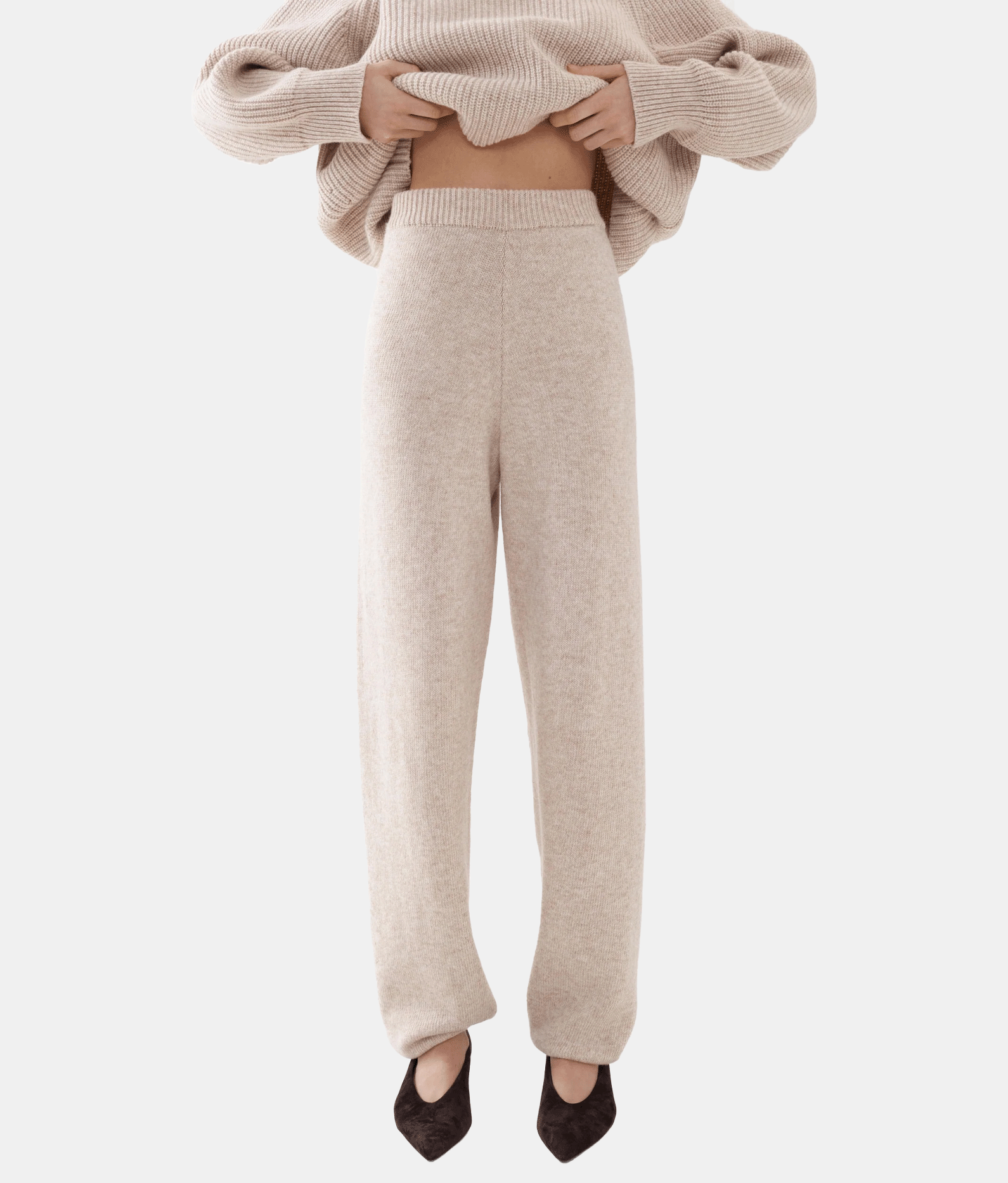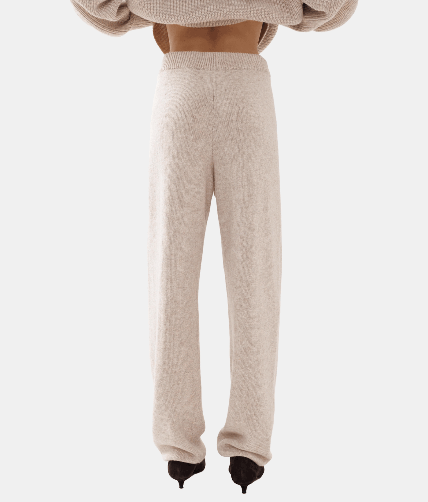М’які в’язані штани прямого крою з мериносової вовни з додаванням кашеміру. Приємні до тіла та зручні у носінні, вони добре тримають форму і легко комбінуються зі светром в тон або іншими елементами гардеробу, створюючи стильний та комфортний образ.