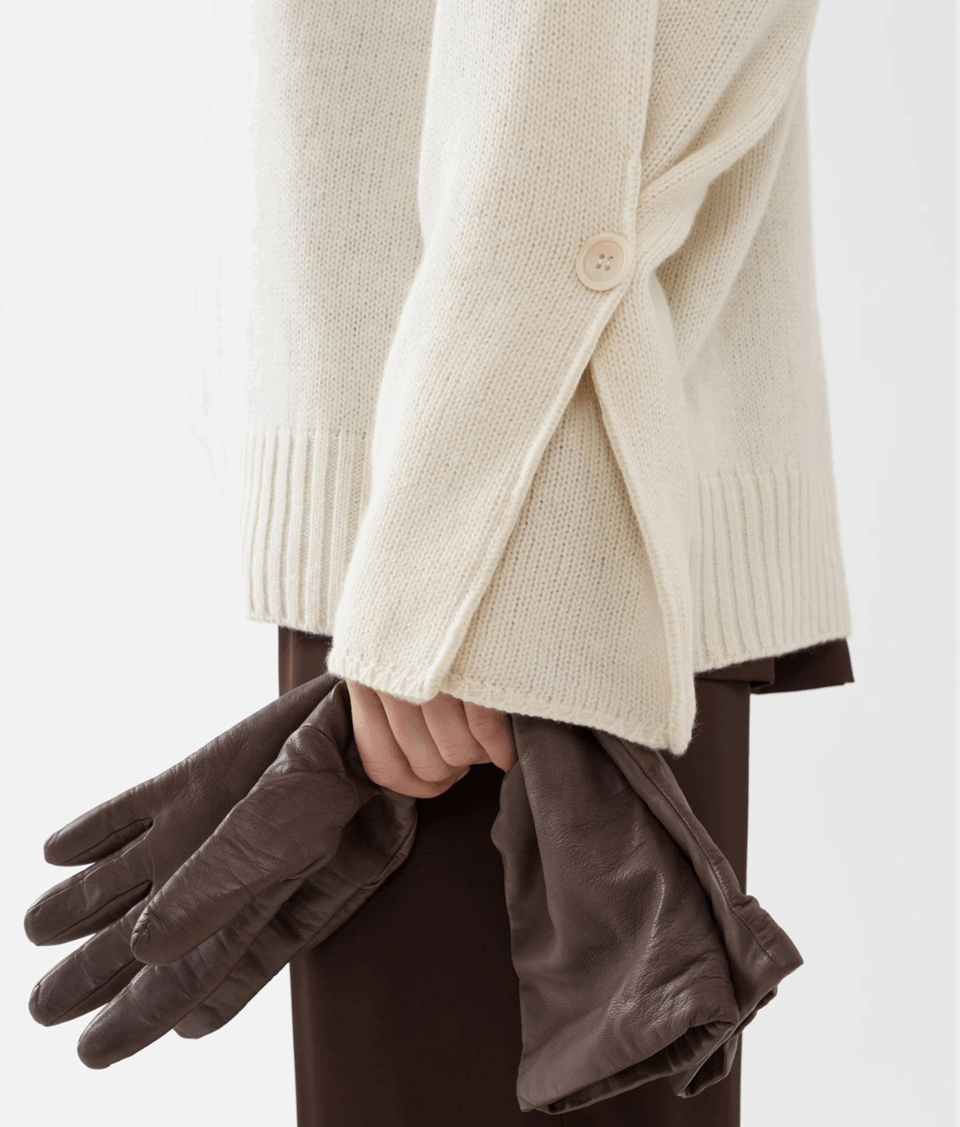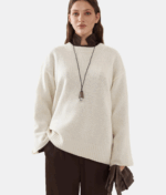 Затишний оверсайз светр із м’якої вовни з додаванням кашеміру. Декорований ручними стібками на плечовій лінії та спині, а також оздоблений декоративними гудзиками, що додають виробу унікальності