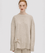 Попелясто-бежевий джемпер з вовни. Прямий крій, довгі рукави, круглий виріз.