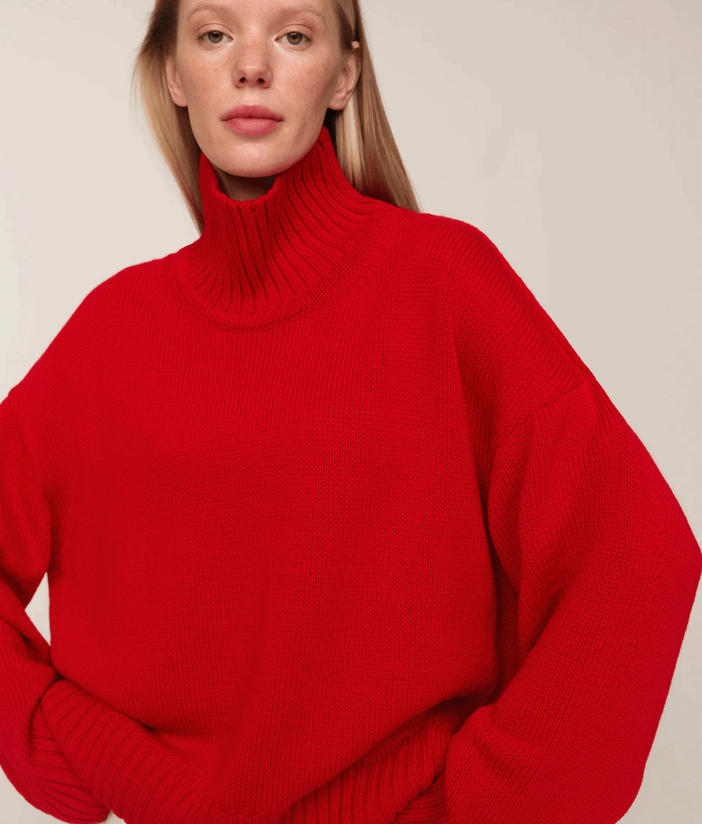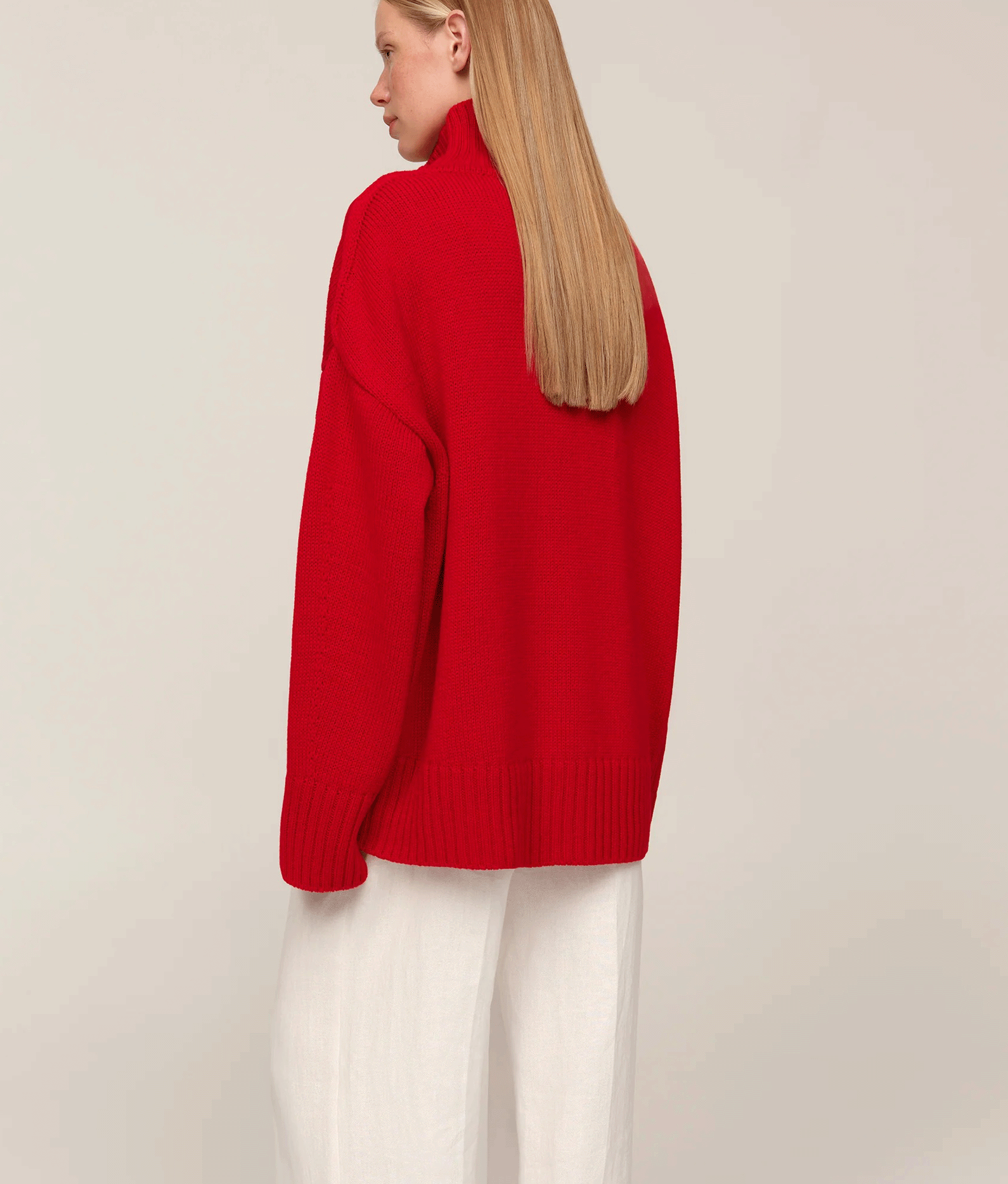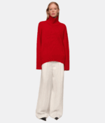 Цей светр із високою горловиною створений як сучасна класика, що поєднує комфорт і виразність форми. Його силует має відчутний об’єм, а різниця довжини між передом і спинкою додає конструктивної особливості та легкості. Подовжені рукава створюють відчуття затишку, а м’яка фактура підкреслює невимушеність образу. Це річ, що працює як основа гардеробу: природна у щоденних поєднаннях і виразна у більш продуманих стилізаціях.