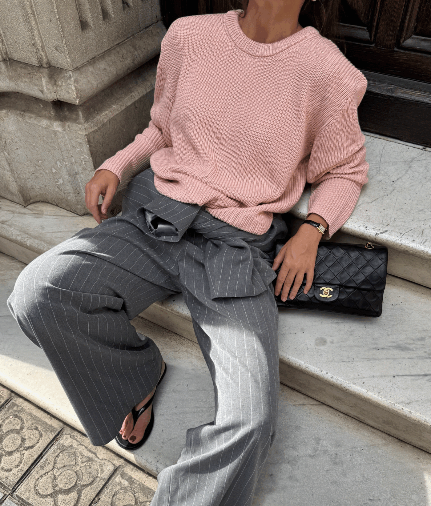 Kaia — светр із бавовни, у якому відчувається чесність матеріалу й чистота форми. Його об’єм підкреслений структурною в’язкою, що додає глибини силуету, а подовжені рукава додають розслабленості образу. Вільна посадка дозволяє легко інтегрувати светр у багатошарові поєднання або носити його як самостійну річ. Це не просто база, а річ, яка тримає форму гардеробу — стримана, але водночас виразна у деталях.