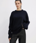 Синій джемпер з вовни та кашеміру. Прямий крій, довгі рукави, круглий виріз
