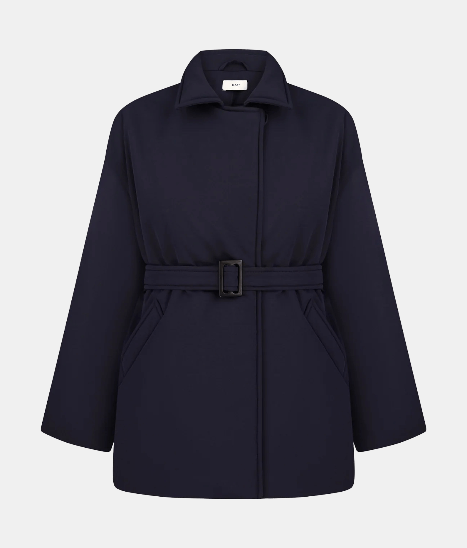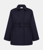 Однобортна куртка прямого крою. Дві передні прорізні кишені. Внутрішня прихована застібка та один обтягнутий ґудзик зверху. У комплекті — пояс з контрастною пряжкою.